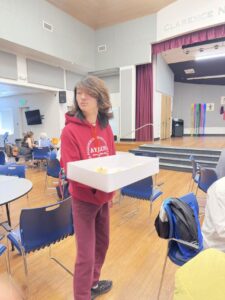 Morning of October 18th, 2 participants join to help out at Lakeview Senior Center. They help prepare for food, pass out balloons, record video because most of the shows that the senior center prepared at on the weekend, they also did their most familiar activity, passing out cakes.