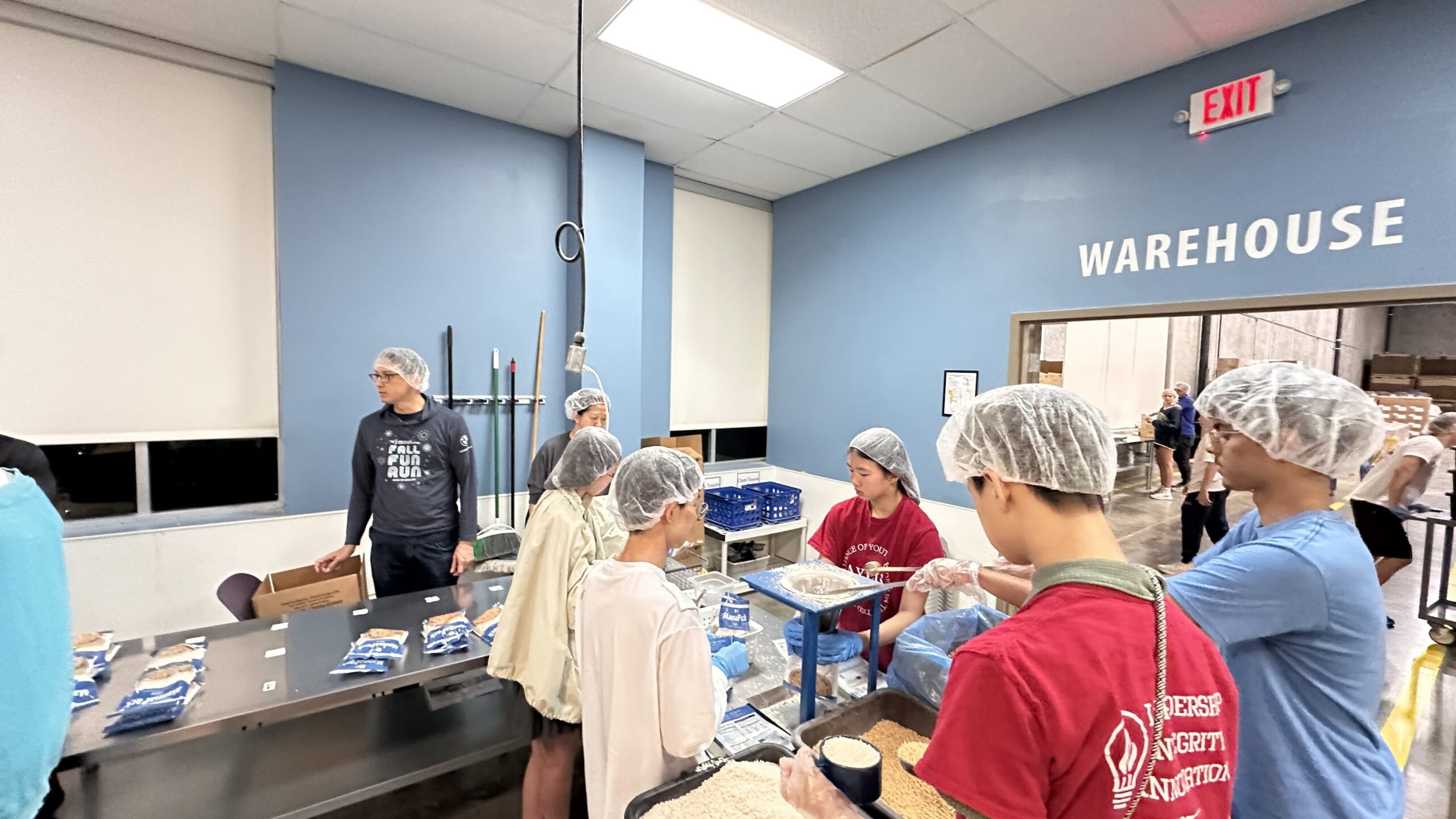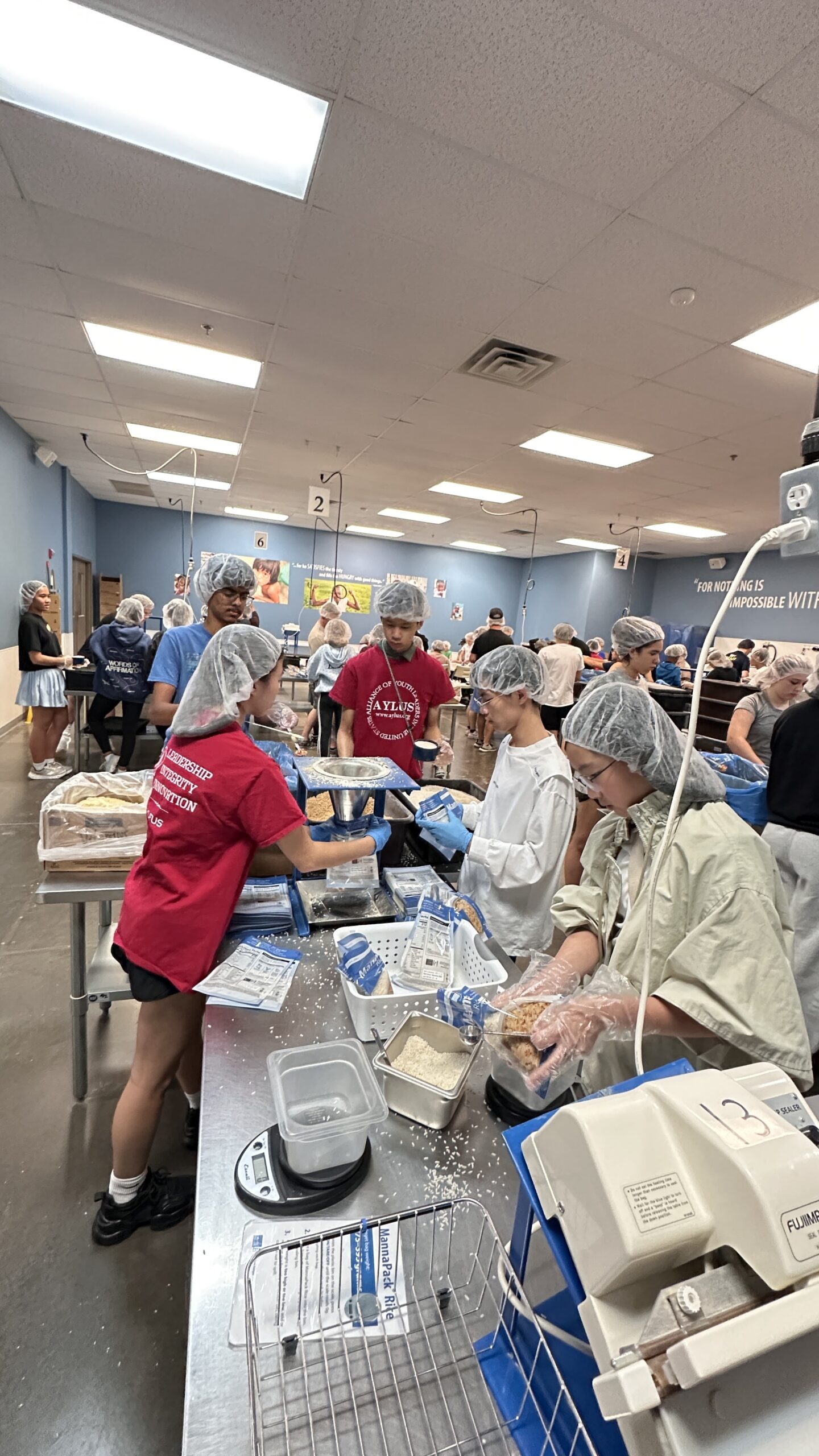On November 15, 2025, we volunteered at Feed My Starving Children (FMSC), a nonprofit organization that wants to help starving kids around the world. During the 7:00 pm session our volunteers packed MannaPack Rice which consists of multiple nutritious foods such as vitamins, vegetables, soy and rice.