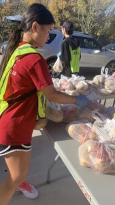 On November 15th, volunteers from the Trophy Club Branch of AYLUS volunteered at the NISD Mobile Food Bank. Our members started off by going through potatoes to ensure that they were fresh, and bagged the fresh potatoes into 5 lb bags. Later, they helped load bags of potatoes onto cars as they came through the drive-thru.