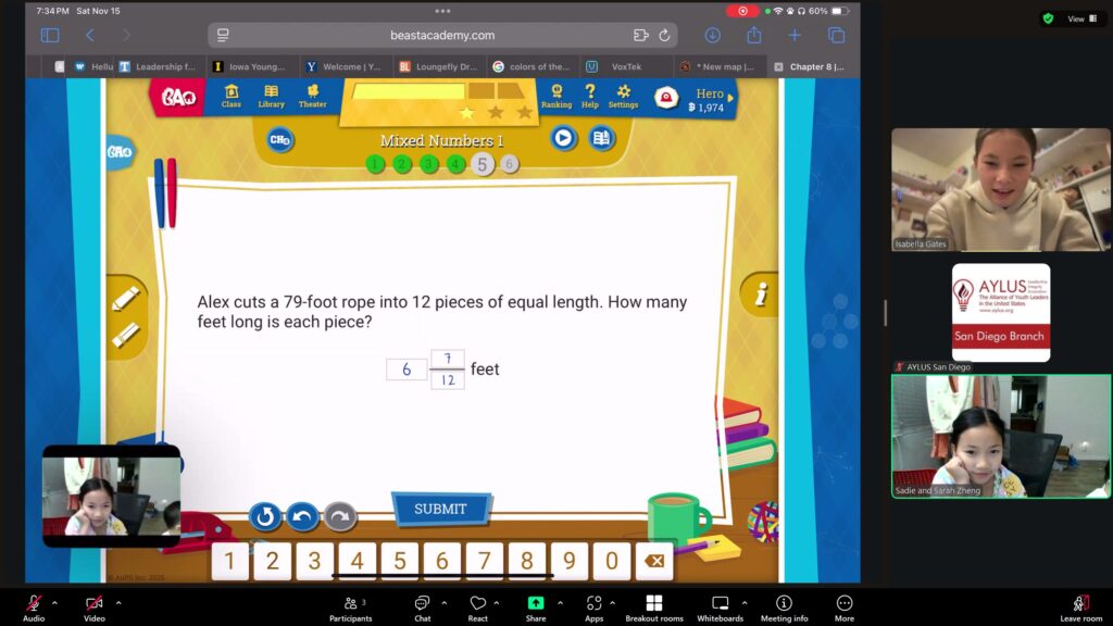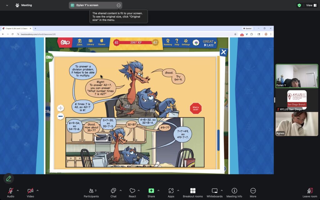 AYLUS San Diego Committee kicked off the Beast Academy online class in 2020 during the COVID-19 period. During 2025-2026, we continue cooperating with Libraries of Love to raise funds. The 65th Beast Academy online class in 2025-2026 was on November 10-November 16, 2025.