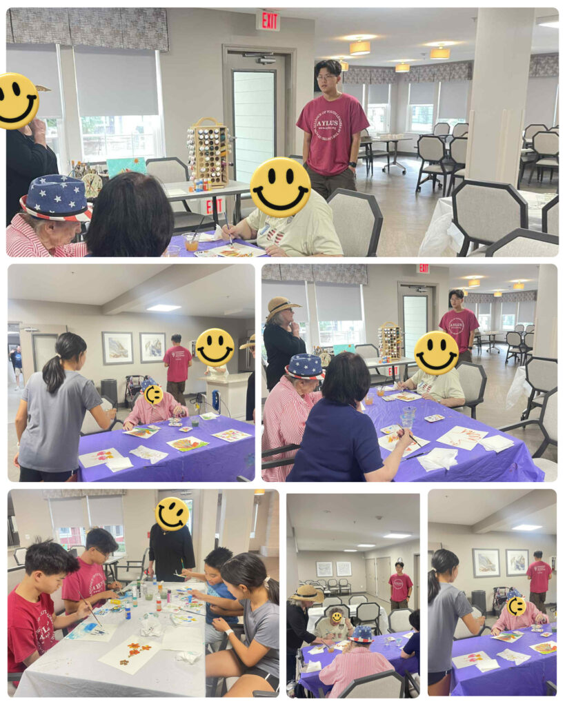 Three AYLUS members volunteered at the senior home’s painting class, where they