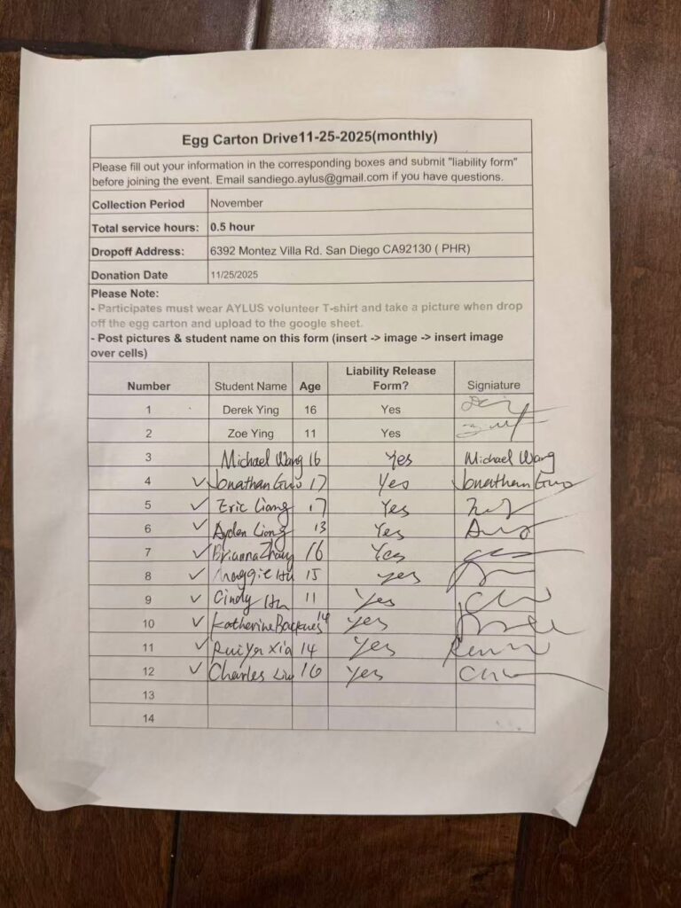 I’m so excited—our Egg Carton Drive has officially reached its one-year mark this month! Although it may seem like a small effort, it has made a real, tangible difference in our community. Even some of our graduates continue to collect egg cartons from their homes and drop them off from time to time. Their volunteer service may have officially ended, but the spirit of serving the community continues to accompany them in life. This month, we also received egg cartons from our neighbors, showing that the support is still ongoing.