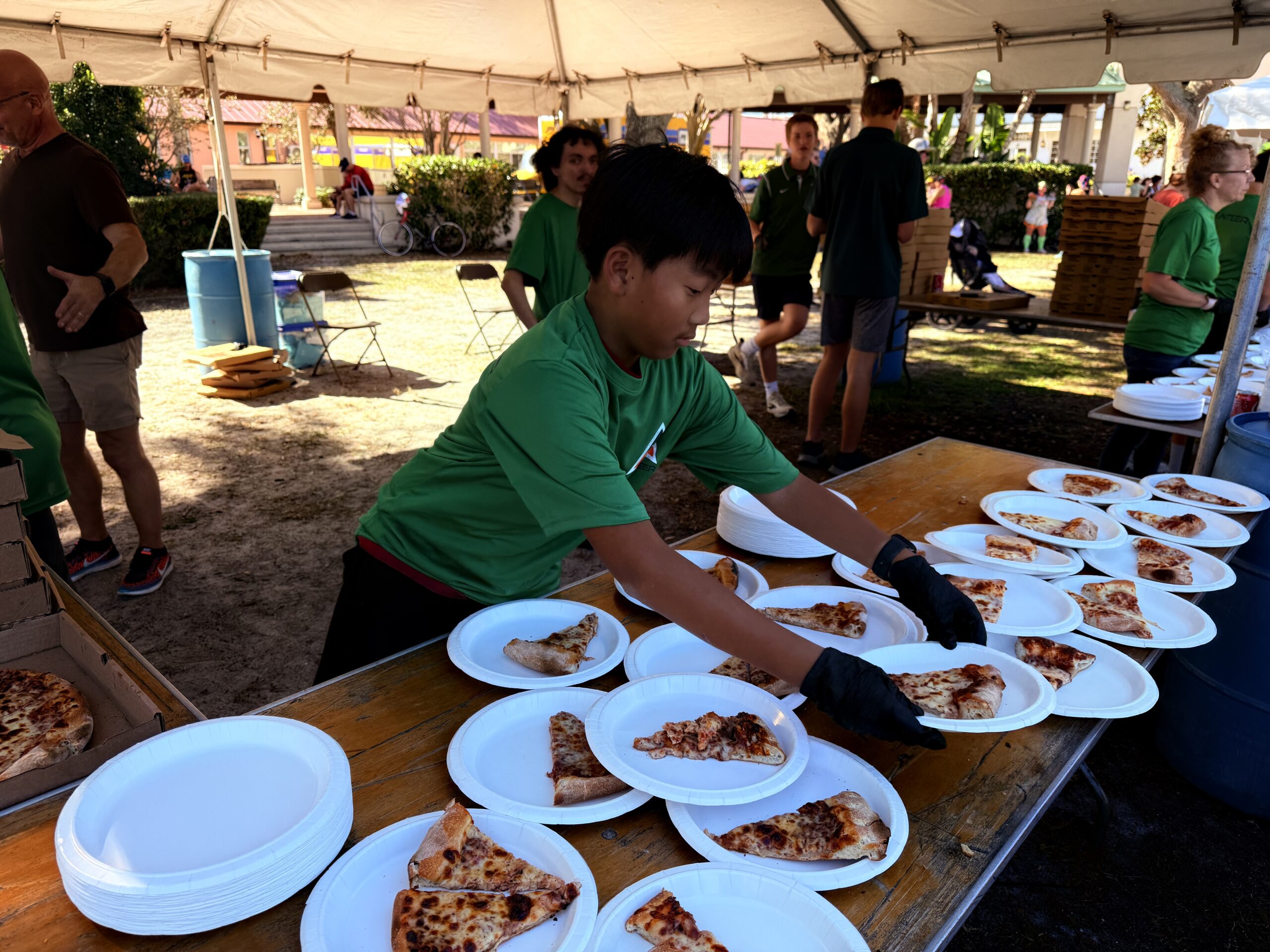 Our volunteers handed out pizza to the runners who finished and also pointed anybody to the correct direction if they needed help finding anything.