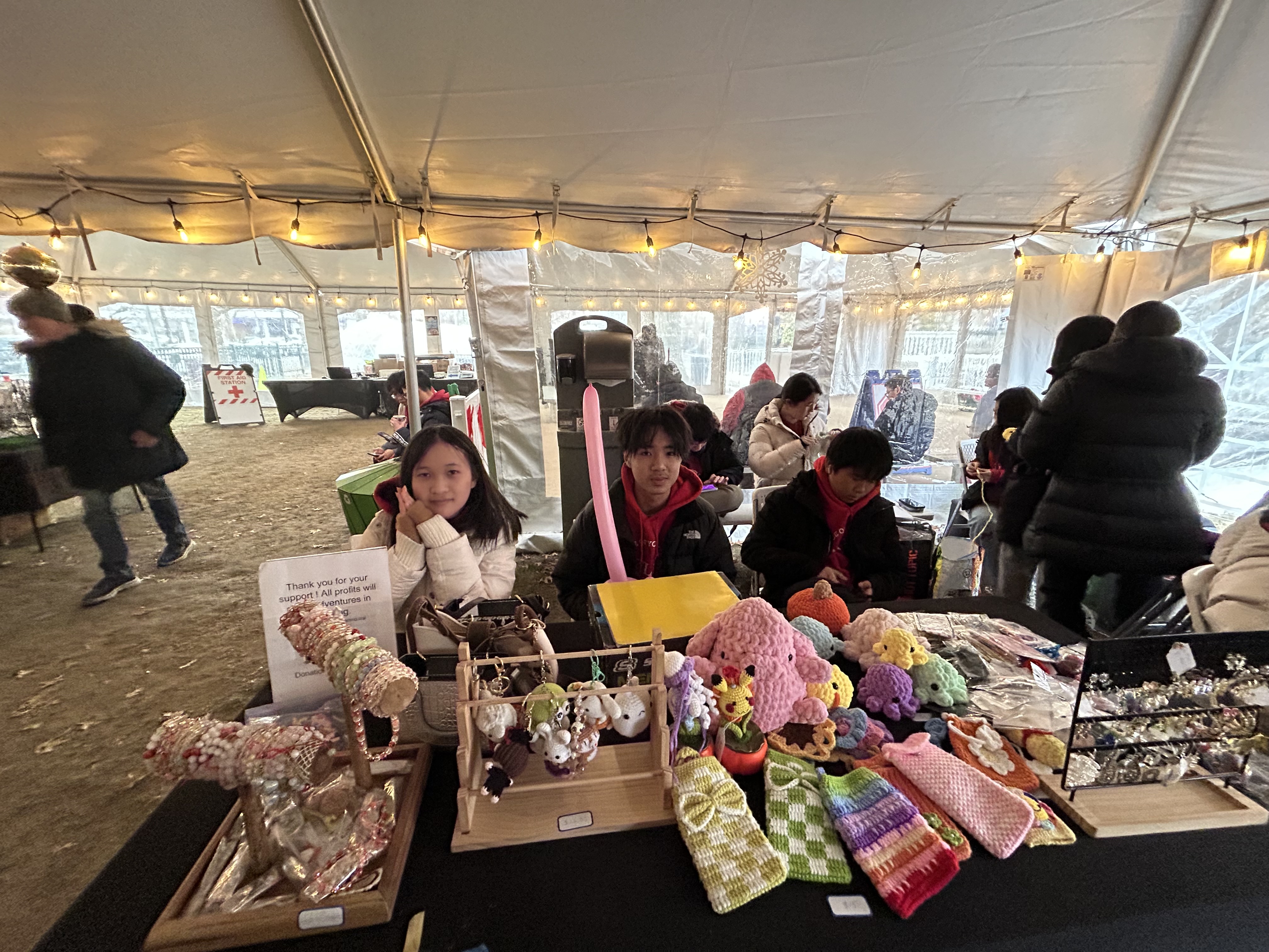 One of the primary activities for volunteers was supporting the farmers market section of the event. Here, they helped manage the booth selling handmade crochets, greeting customers, and handling sales.