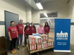 On December 1 2025 members of AYLUS Greater Buffalo Branch volunteered to donate winter clothing and essential household supplies to Journeys End Refugee services. After moving all boxes to the center on fifth floor, the program coordinator guided the volunteers on a tour of the service center and introduced the various services they provide for refugees. Both sides also exchanged introductions of the new AYLUS Volunteer team members and Journey’s End Refugee Services staff members, they also discussed future collaboration plans. The staff highly praised the support AYLUS volunteers have provided over the years. This event lasted from 3:00PM to 5:30PM.
