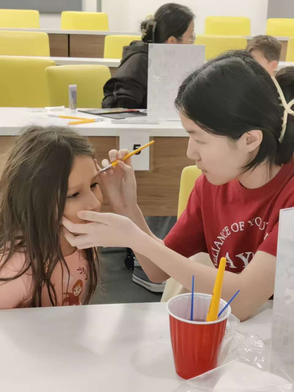During the event, our team organized the face-painting activity which attracted hundreds of children. We prepared a variety of Christmas-themed designs and operated in two shifts with six stations per shift. The line remained long from the start of the event to the very end.