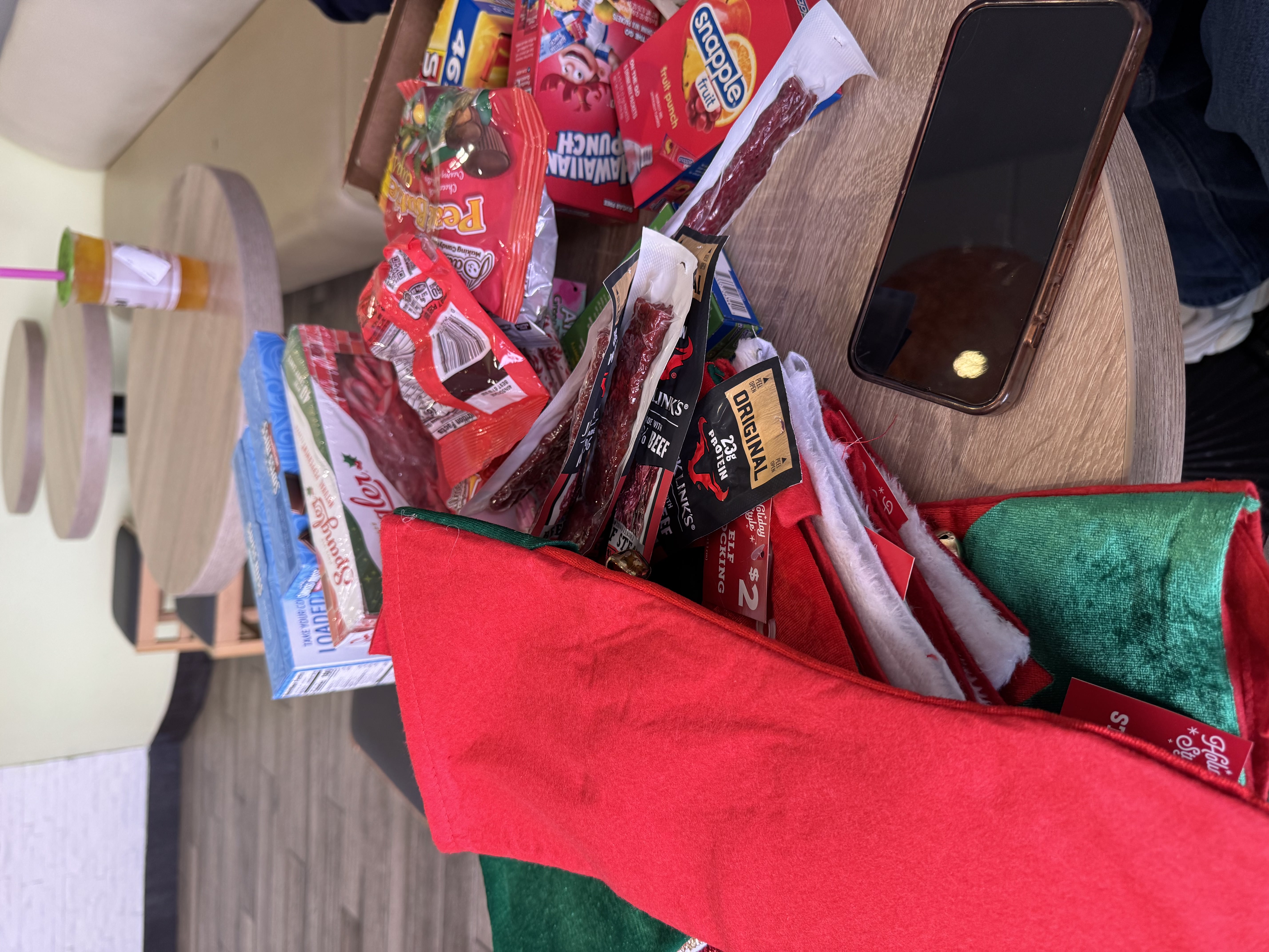 On December 13th, 2025, Arlington Branch Members went to the Dollar General to shop for supplies then gathered at Royal Tea to pack, then went to a members house to box and ship from 12pm-4pm. There were around 10 stockings packed total, each containing needed items outlined on the Soldiers’ Angels website and a hand-drawn card. These stockings were sent directly to the Waco Army National Guard Armory through the Soldiers’ Angels program.