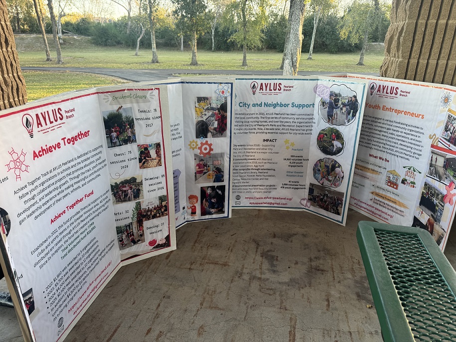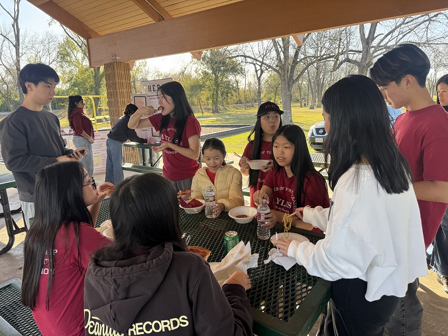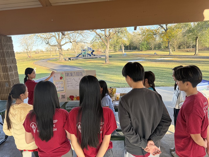 On the afternoon of December 19, the last day of school, we hosted our annual holiday celebration at Tom Bass Regional Park for community youth. Volunteers provided food, drinks, and desserts, and student clubs were invited to present their initiatives. Three junior high and high school Future Problem Solvers teams participated, showcasing their projects and ideas.