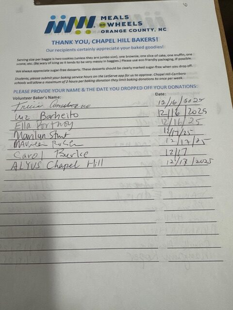 On December 14th, 2025, members of Chapel hill Branch baked homemade cookies for Meals on Wheels, an organization committed to fighting hunger in our community. For years, Meals on Wheels has been delivering vital meals to local seniors and others who struggle to access food, ensuring they receive the nourishment they need. Our dedicated volunteers baked the cookies in their own kitchens, hoping that these simple acts of care and kindness would bring joy to the seniors they serve. We also hope to inspire others in our community to join in and spread goodwill.