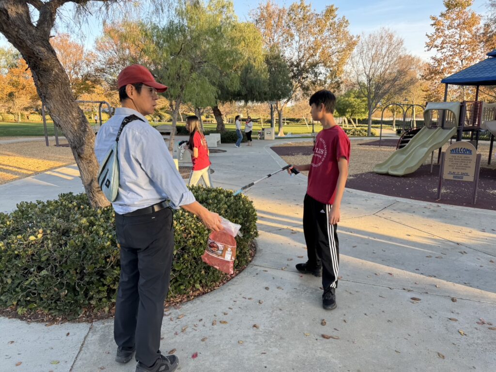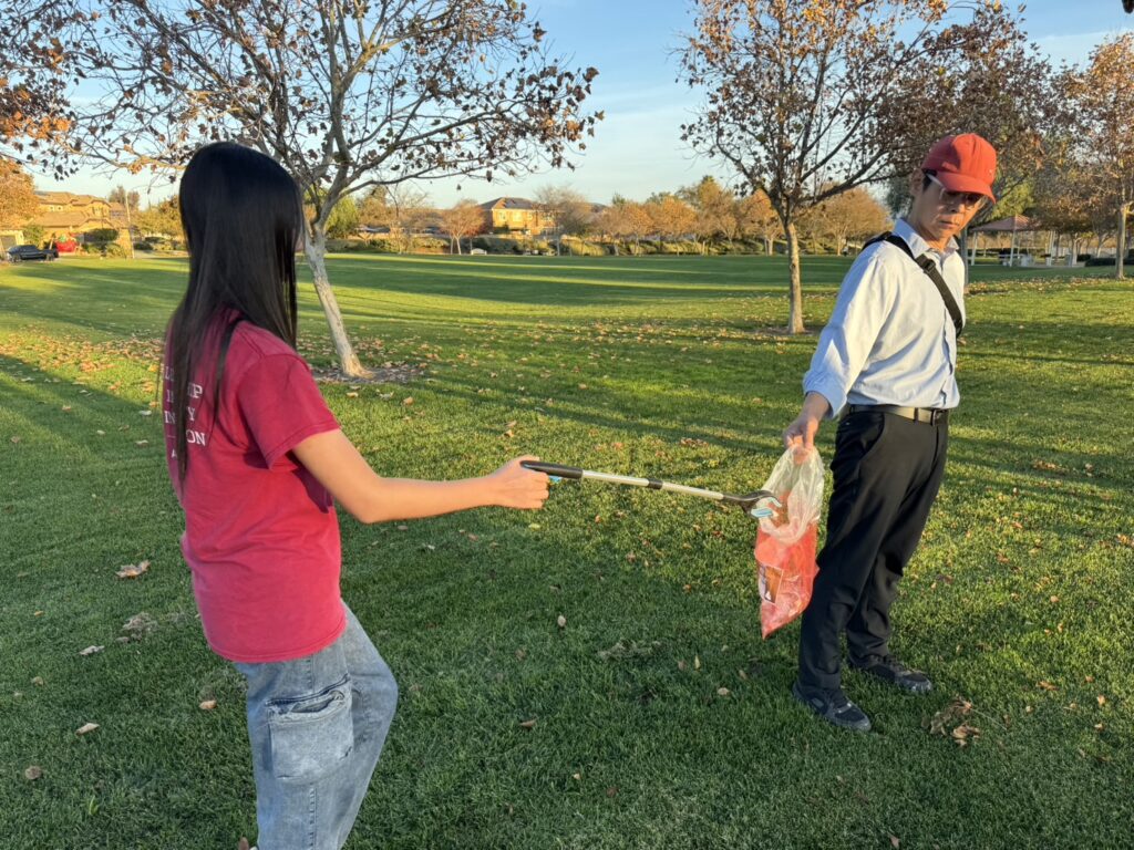 Today we went to the park to pick up litter. Together, we used tongs to pick up the trash on the ground, making the park clean and tidy. Picking up litter in the park is a great way to get some exercise and see a clean environment. We all felt a great sense of accomplishment and learned to cherish and protect the environment even more.