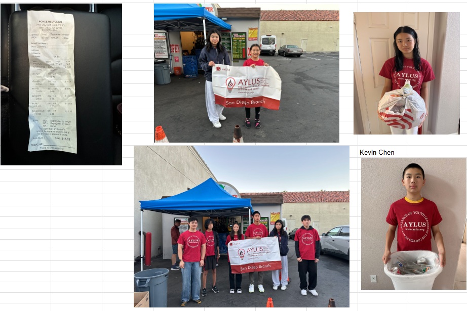 On 12/06/2025, San Diego students of AYLUS hosted its 57th monthly bottles and cans recycling event. Inspired by the Earth Day 2023, we set a goal to take action and to be a part of the green revolution. The students collected recyclable items and sorted them in a nearby recycling center. All proceeds go to fund the AYLUS.
