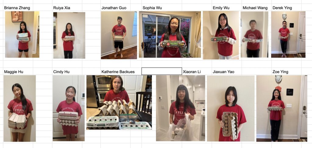 We are helping 92130Cares, a non-profit organization that provides food to low-income families in 92130. Grocery stores are not allowed to remove broken eggs from a carton, so they donate the whole package to 92130Cares. 92130Cares repackages the good eggs into packages of 6, and the donated egg carton will be cut and used to help safely distribute eggs in our community, helping families in need.