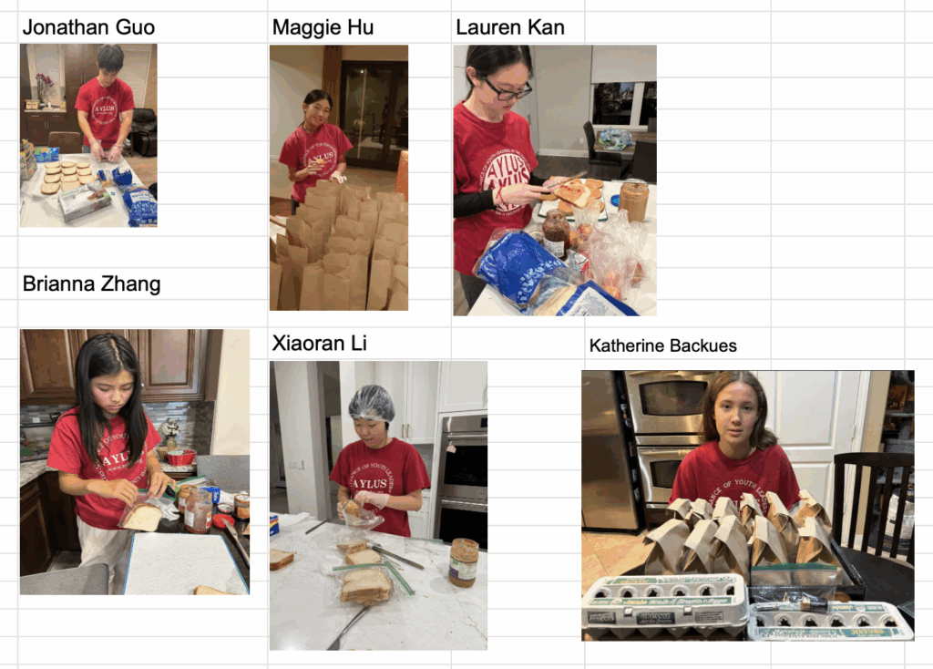 The following 6 AYLUS volunteers participated and made 106 sack lunches 12/8/2025 and delivered all of them to Interfaith Community Services on the day:
