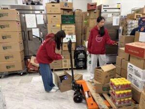 In the morning when we first arrived, we started off with packing bags for NOSH’s KFIP(Kid’s Food Independence Program). This food aims to provide food for kids when it isn’t provided to them by the schools when they are at home. It allows children to have independence of their own food. The bags were decorated by students around Long Island and were especially designed for the holiday season. Students are home from school during the holidays for an extended period of time, which means their families will have to provide them with food. The KFIP bags help take some of the responsibility of off the parents. We filled the bags with either breakfast foods or lunch foods. The KFIP bags fly off the shelves so we had to restock constantly. We also prepared extras so volunteers in the following days don’t have to pack any more.