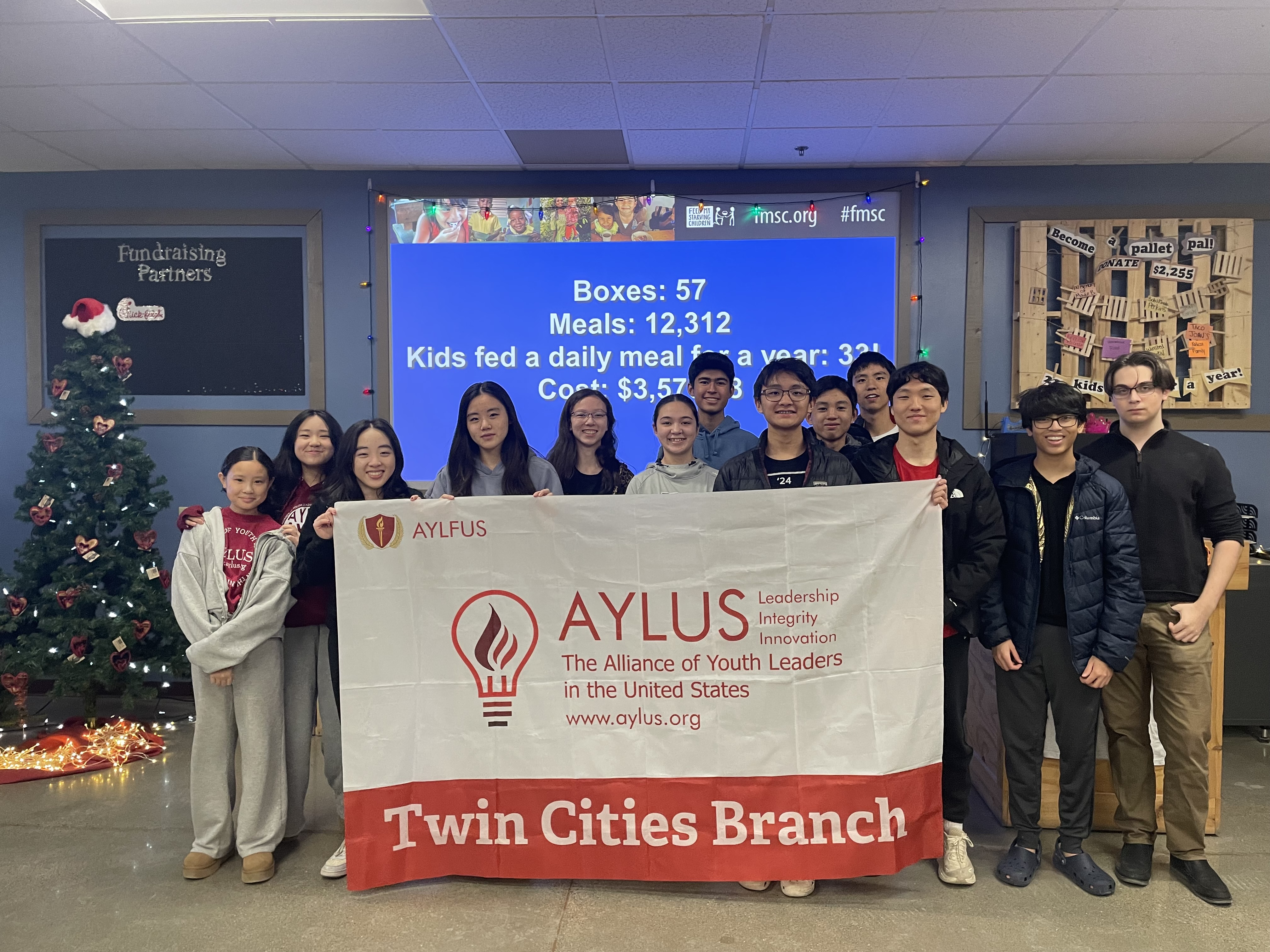 On Friday evening to kickstart the new year AYLUS members volunteered once again at FMSC in Chanhassen. Overall they worked to pack 57 boxes, and fed 33 children a daily meal for a whole year! We will continue making an impact in 2026.