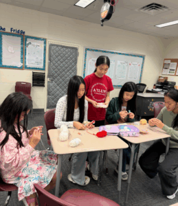 Members Winny Wang and Rachel Dai of the Gainesville AYLUS Branch organized the weekly Sunday Crochet Class program at Huagen Chinese School (a community education center located at Oak Hall School each Sunday). Providing free volunteering for Huagen each week, the volunteers held two one-hour sessions for different groups of students (available for ages 7 & up).