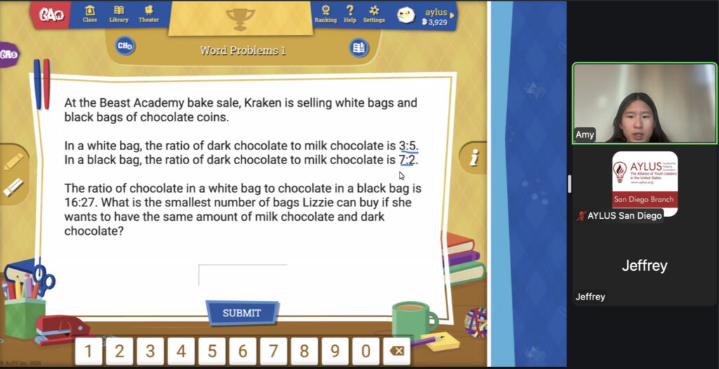 AYLUS San Diego Committee kicked off the Beast Academy online class in 2020 during the COVID-19 period. During 2025-2026, we continue cooperating with Libraries of Love to raise funds. The 70th Beast Academy online class in 2025-2026 was on January 5-January 11, 2025.