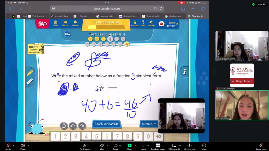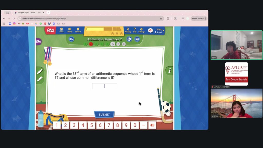 Beast Academy is a mathematics program for elementary and middle school students, and highly qualified high school volunteers will be teaching the Beast Academy curriculum. Currently at the San Diego Branch, enough students have signed up for this course for it to be offered in five levels: 1, 2, 3, 4 and 5. Through tutoring sessions hosted virtually over Zoom, our volunteers teach students numerous informative mathematical concepts that help to bolster problem-solving skills and improve their mathematical knowledge.