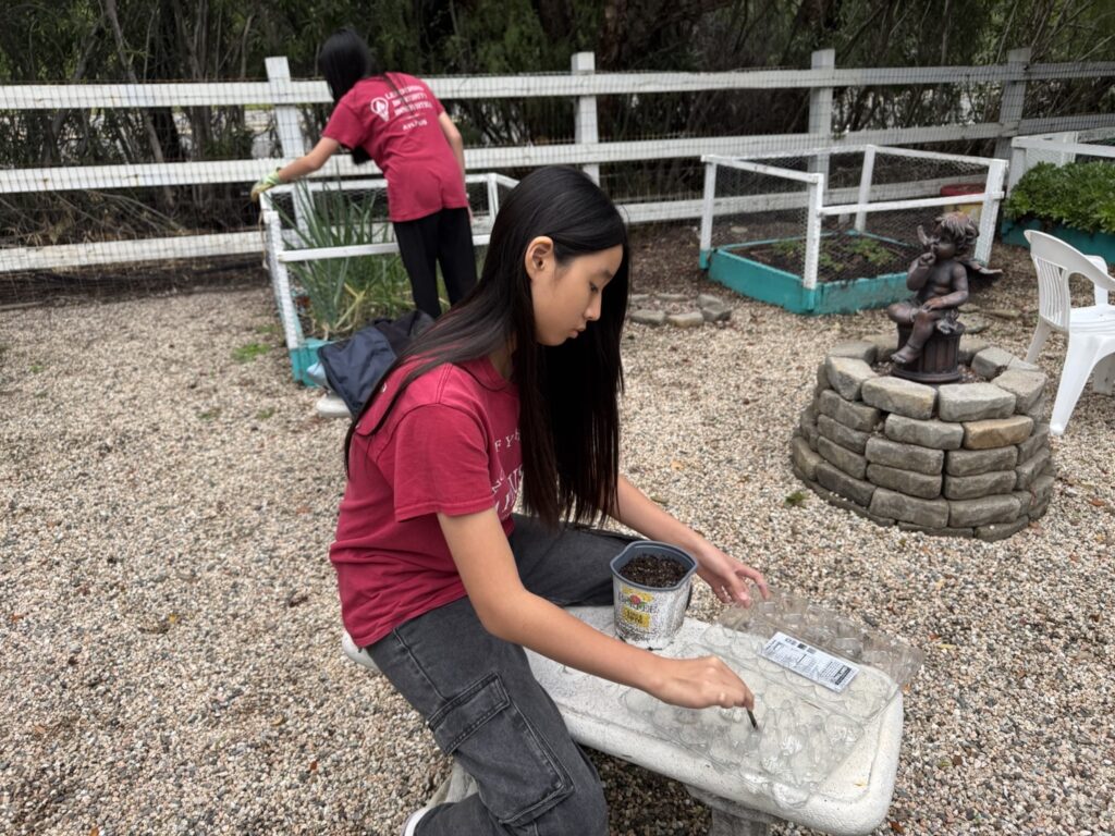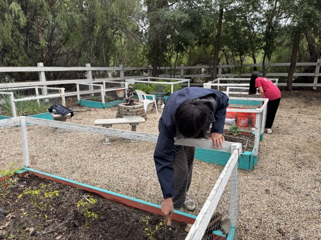 On January 3, 2025, AYLUS Murreita members went to Jacob’s House vegetable garden as usual. The bok choy seedlings we transplanted last week hadn’t grown well due to the continuous rain and cold weather, which was quite frustrating. Nevertheless, we continued weeding and fertilizing to replenish the soil nutrients. After finishing these tasks, we harvested the mature green onions, gave them to the residents of Jacob’s House, and ended our gardening work for the day.