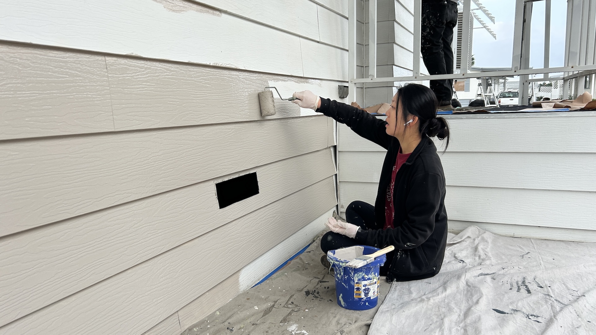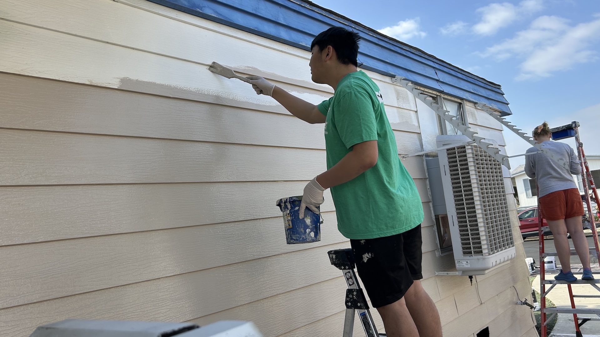 Safety instructions and a demonstration were given before the volunteers start to work, many members have been participating this project for years and become skillful painters, they carefully outlining the edges of the house with brushes before using rollers to cover the larger areas. They split up and each member took responsibility for different walls of the house and the adjoining shed. Once the painting was complete, they cleaned up their supplies, tarps, and paper, helped to store all supplies to the trailer, and make sure the site was left tidy, no trash left behind, no paint will be found o floor.