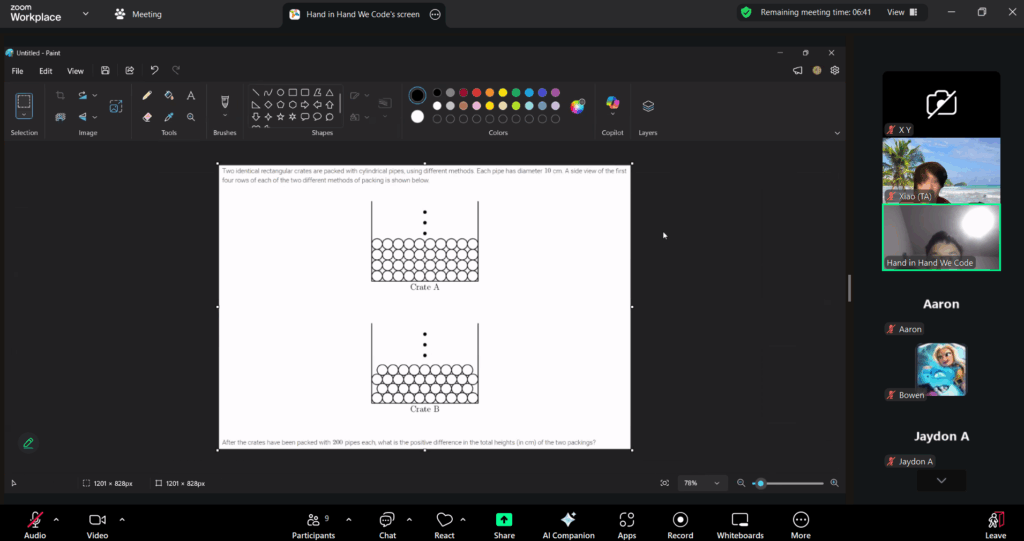 day 4: On the 18th of January 2026, AYLUS’s Hand in Hand We Code project hosted its third AMC 8 Prep camp, with project lead Joey and TA Xiao. They did a walkthrough of some more basic AMC 8 practice problems, covering a variety of topics such as measures of central tendency (mean, median, mode), simple geometry (angles, shapes, area, perimeter), sequences, and some simple algebra. The class was 1.5 hours long, and gave the students good insight into geometry and algebraic topics. Jiayi also spent additional time on Q&A and homework correction.