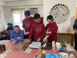 We began by baking cookies for the residents and let them partake in the process; all volunteers enjoyed participating. The residents helped mix and handle the ingredients with supervision and assistance.