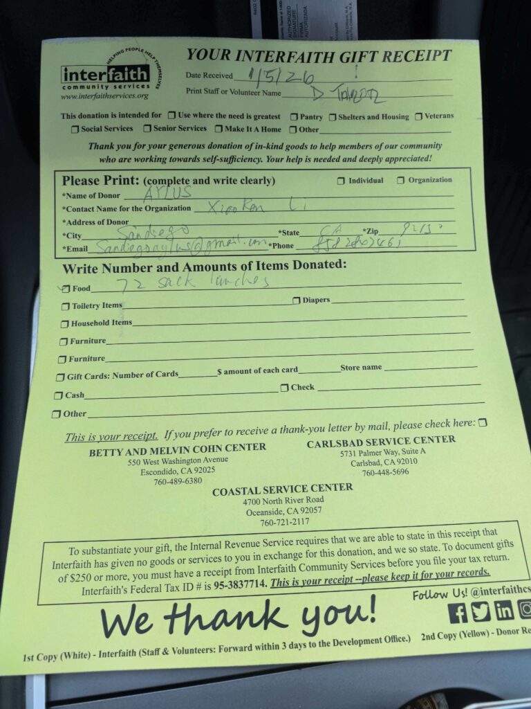 On January 5, 2025, AYLUS San Diego Branch made sack lunches for Interfaith Community Services.