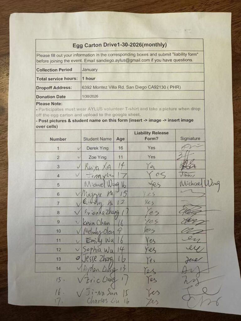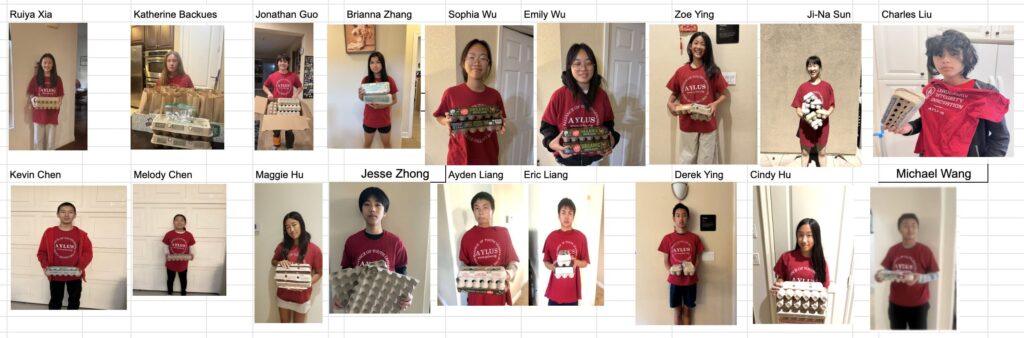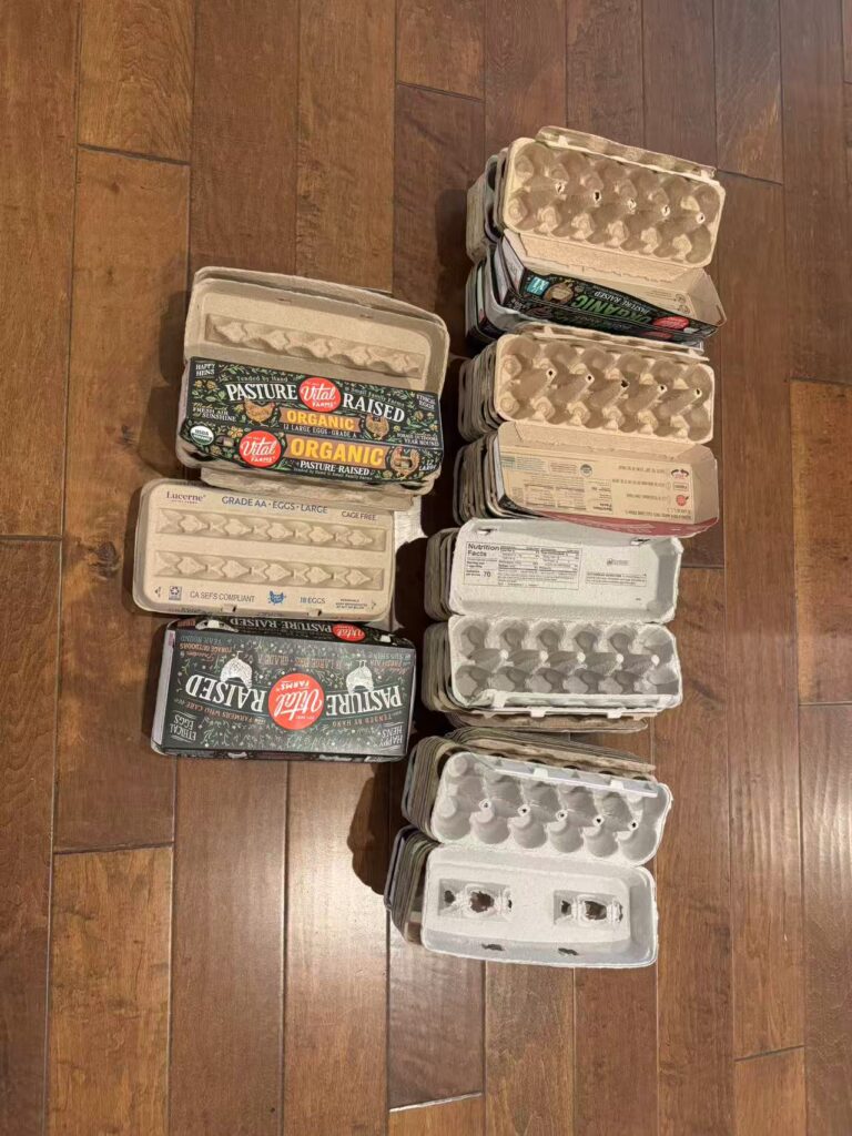 We are helping 92130Cares, a non-profit organization that provides food to low-income families in 92130. Grocery stores are not allowed to remove broken eggs from a carton, so they donate the whole package to 92130Cares. 92130Cares repackages the good eggs into packages of 6, and the donated egg carton will be cut and used to help safely distribute eggs in our community, helping families in need.