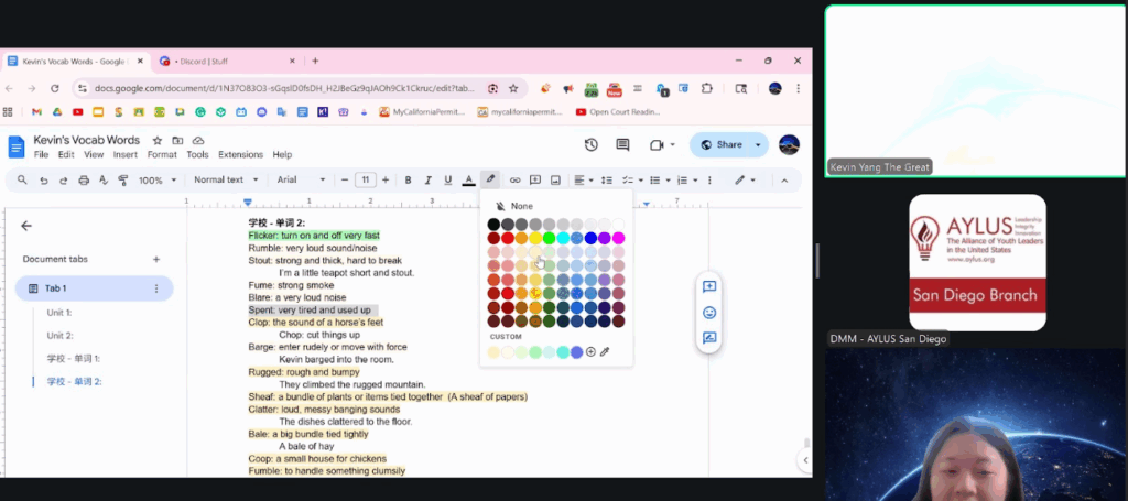 Through this activity, AYLUS volunteers were able to teach 5 students a wide array of topics and led them through many different discussions, each one tailored to suit the student’s individual needs. Each class is a one-on-one private lesson, with volunteers specifically matched with students.
