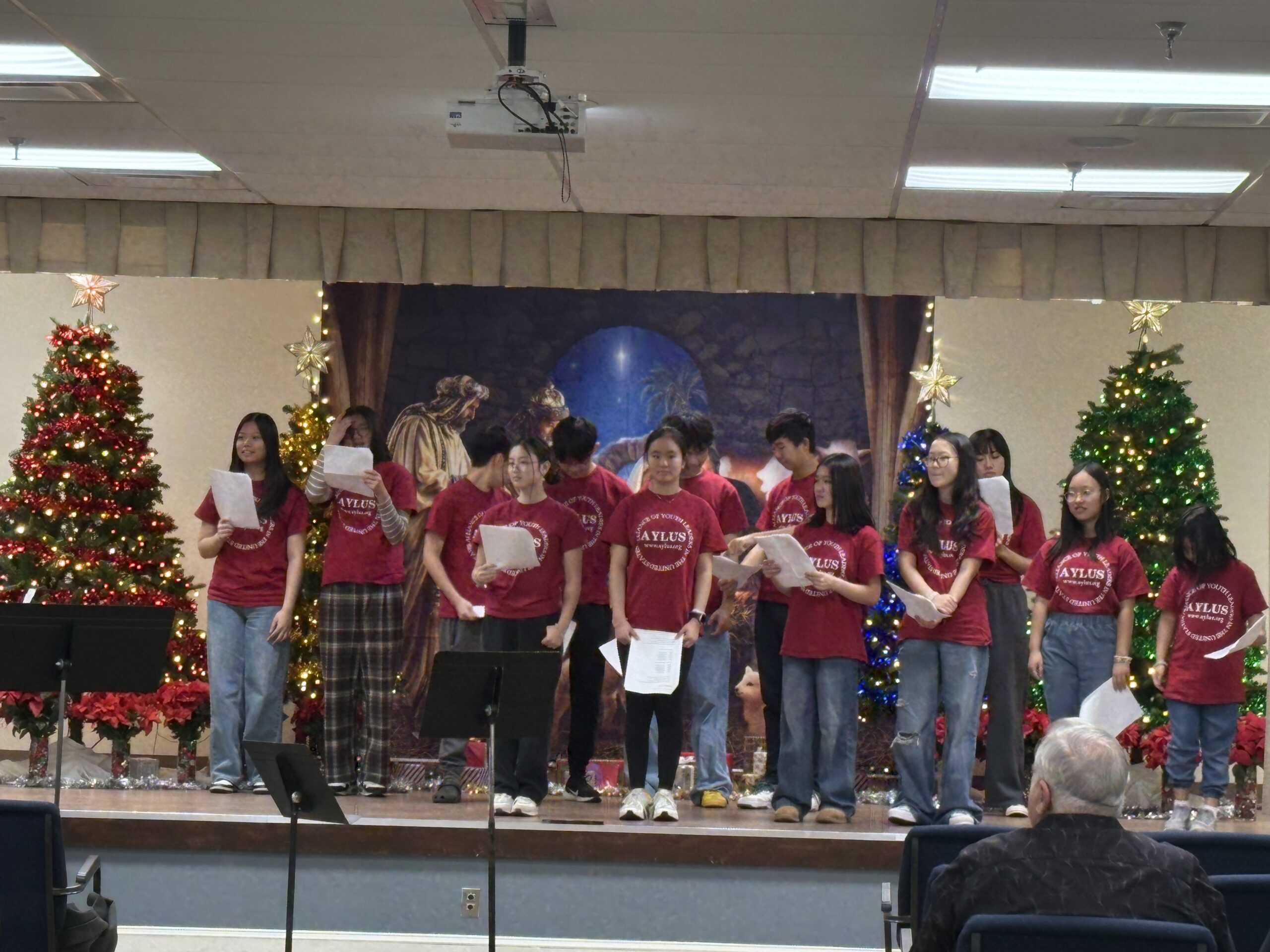 On the evening of Saturday, January 3rd, 20 members from the AYLUS Greater Tulsa branch visited University Village once again to present a live music concert for the residents. Prior to the event, the group rehearsed for approximately an hour and a half to finalize the program, coordinate transitions, and ensure performers were prepared. The performance itself lasted around two hours and featured a diverse program of approximately 25 pieces.
