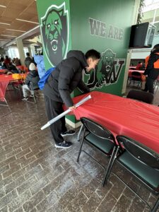 After the show, volunteers distributed some snacks, chips, and oranges to parents, students, and teachers. Around 4:00 pm, after the majority of the attendees had left, AYLUS volunteers helped clean up the mess hall. Table clothes were thrown out, pieces of food were swept off the ground, and tables were folded up. Overall, with the help of AYLUS volunteers the Lunar New Year show was a success where students, parents, and teachers enjoyed a clean, safe environment to welcome the New Year.