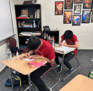 Later in the afternoon, Jalen Zheng and Logan Wu assisted teachers in the Paper Craft II class. They helped distribute materials, demonstrated steps of the craft activities, and provided guidance to students who needed additional support.