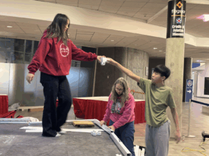 In the beginning of the activity, volunteers helped build tables for the base of the practice, skill, and competition fields. Volunteers had to help level out risen fields to insure that the robotics competition would flow smoothly. Then, volunteers started placing down and connecting foam mats together for the robots to move around on. Next, volunteers had to put plates under the mats and build walls around the mats so the robots wouldn’t leave the field. During this, we didnt have enough parts for one field; so some of us started to venture throughout the museum to find more parts. After that, volunteers started screwing goals and other structures into the plates under the mats. Overall, this whole activity showed us how teamwork and companionship can improve a project by a ton, it was a lovely team building experience and volunteers would love to go back.