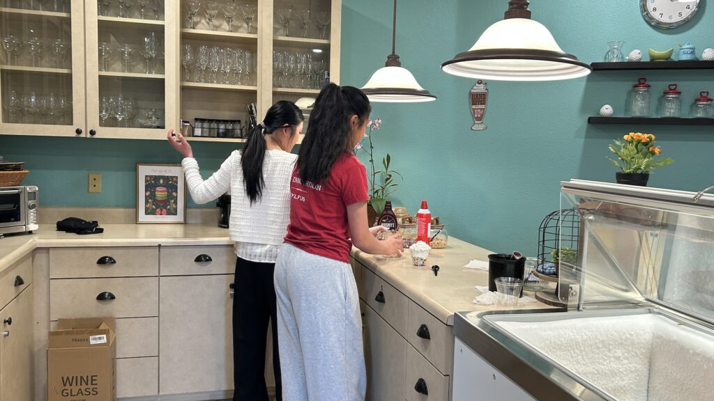 At the ice cream parlor member assisted with serving treats and chatting with seniors.