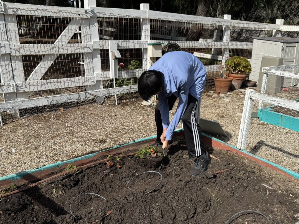 On February 14, 2026, Murrieta members carried out gardening work in the vegetable garden. Upon arrival, we first cleared weeds and tilled the soil to prepare the vegetable beds. Then we fertilized to improve the soil. After the soil was prepared, we harvested lettuce and sowed lettuce seeds, carefully watering them to promote healthy growth. The day’s work was completed smoothly.