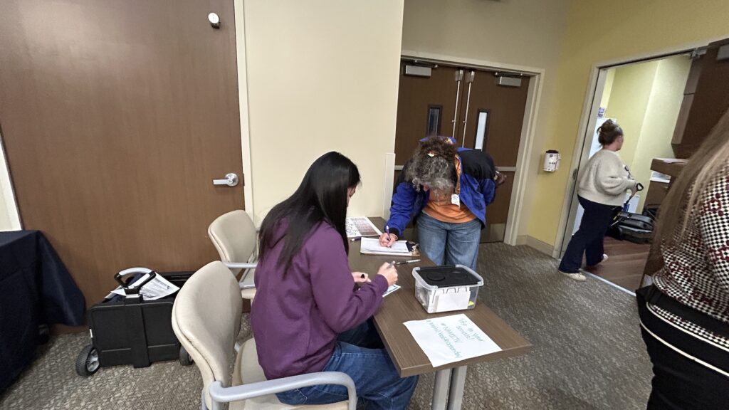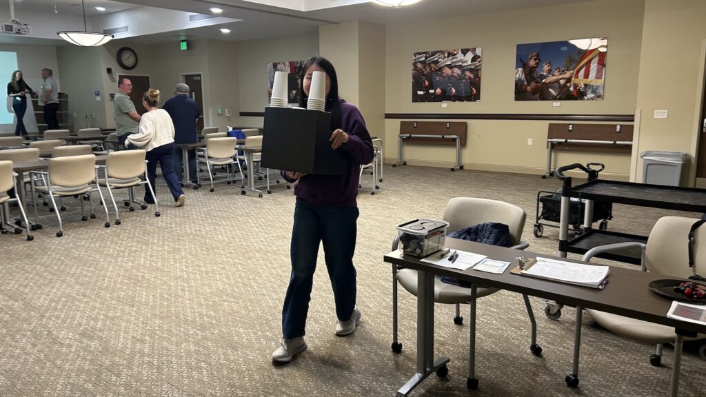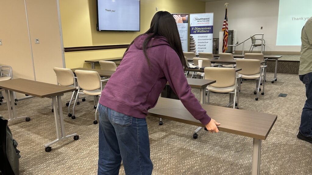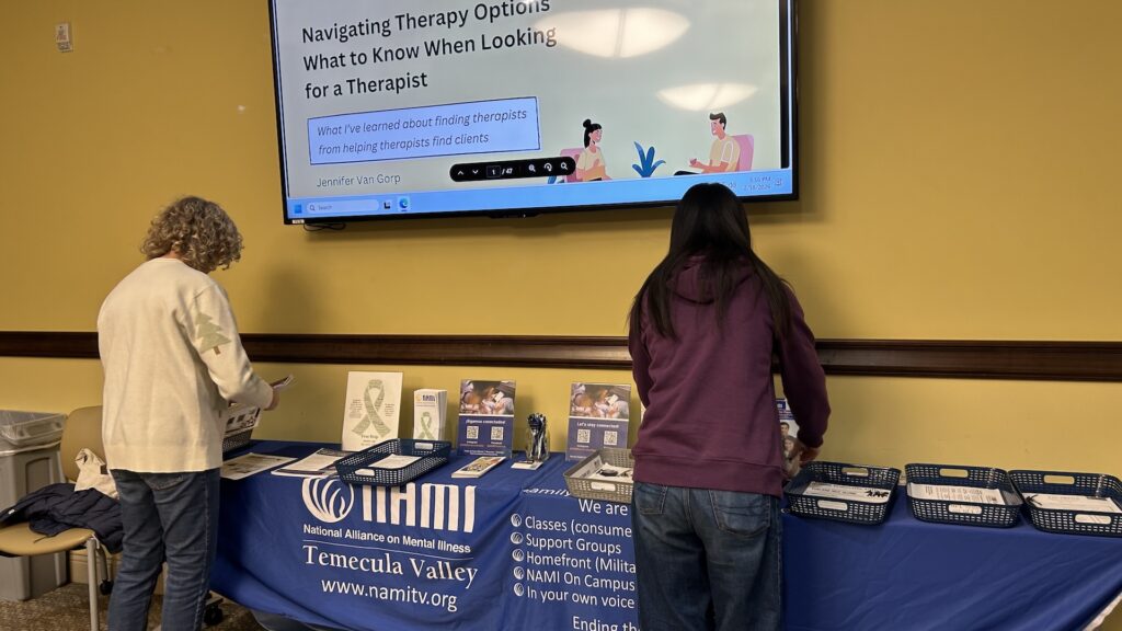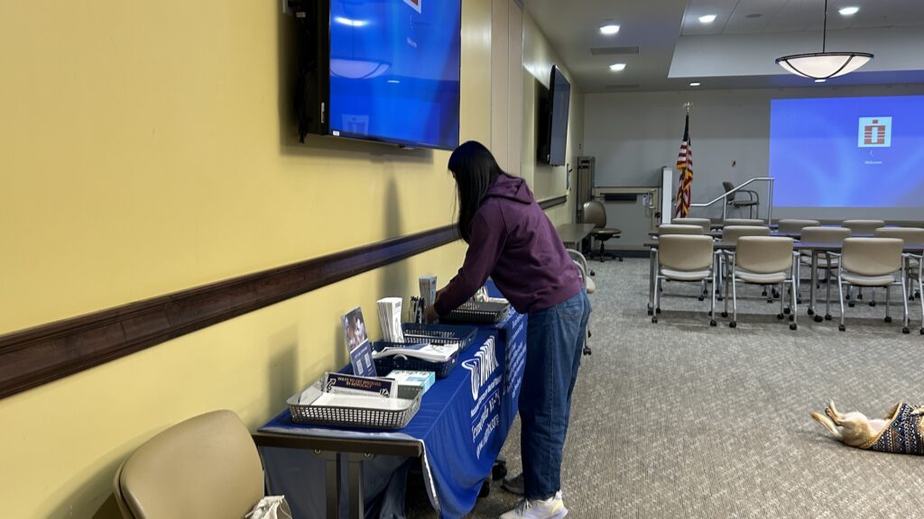 On February 18, 2026, Murrieta AYLUS members volunteered with NAMI for their monthly mental health support group meeting held at Temecula Valley Hospital. Members arrived 30 minutes before the meeting to help with the setup. They prepared the NAMI booth with flyers, cards, meeting agenda information, and check-in forms, and also helped organize the refreshment table. After the setup was completed, the members joined the group meeting to listen to the discussion and show support for the participants.