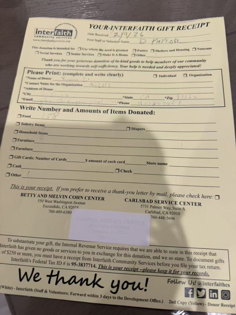 On February 9, 2025, AYLUS San Diego Branch made sack lunches for Interfaith Community Services.