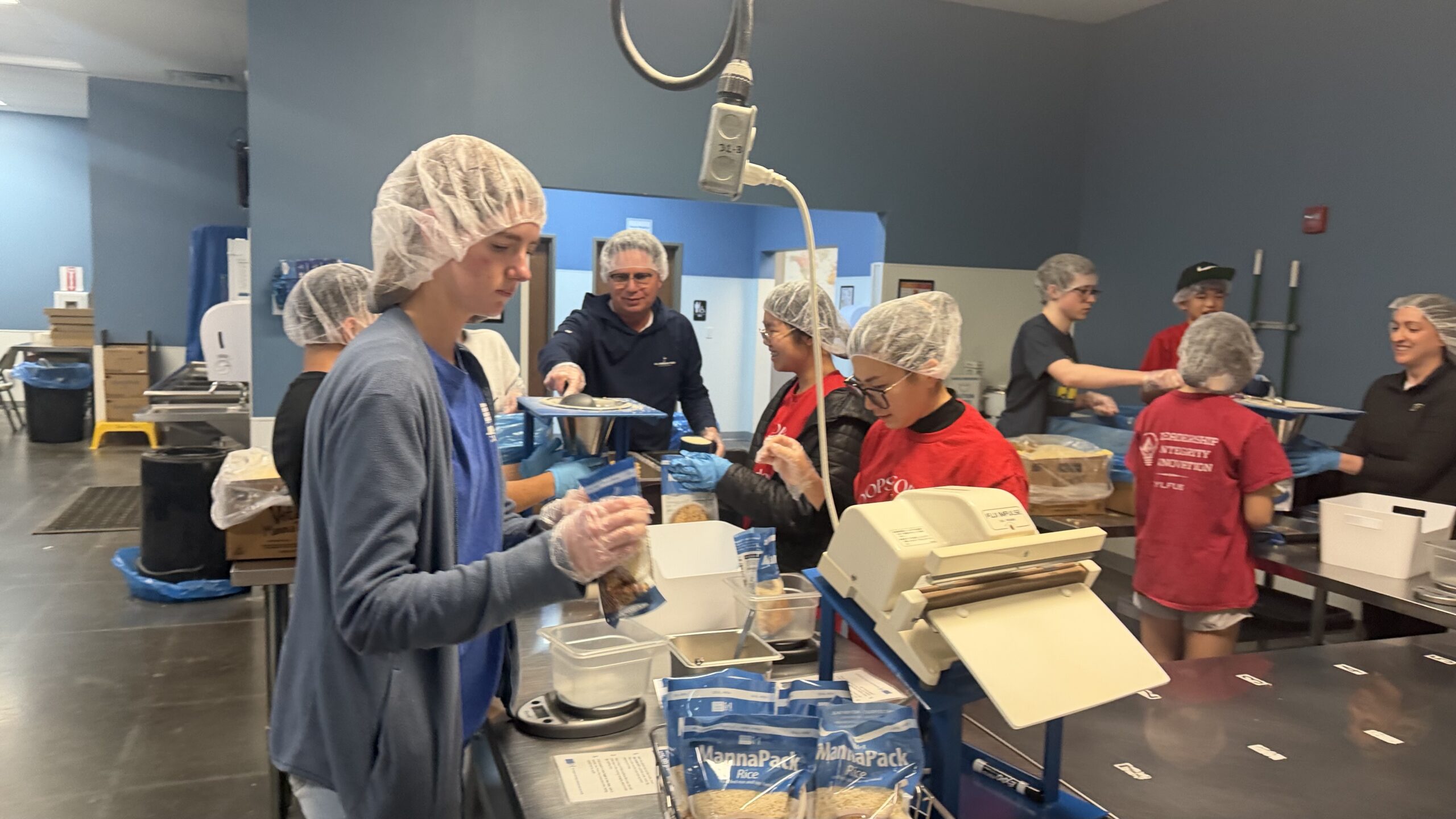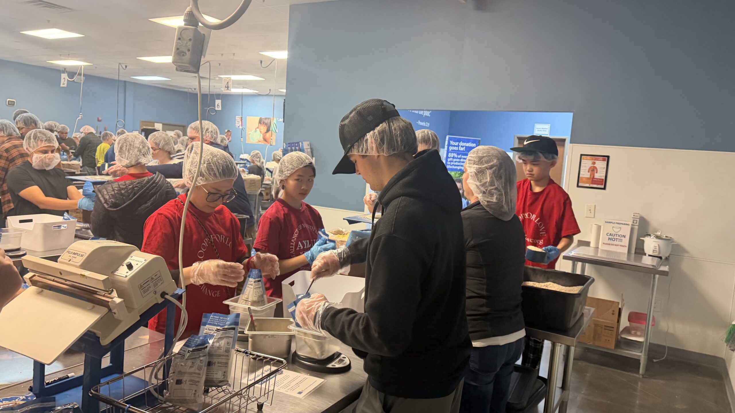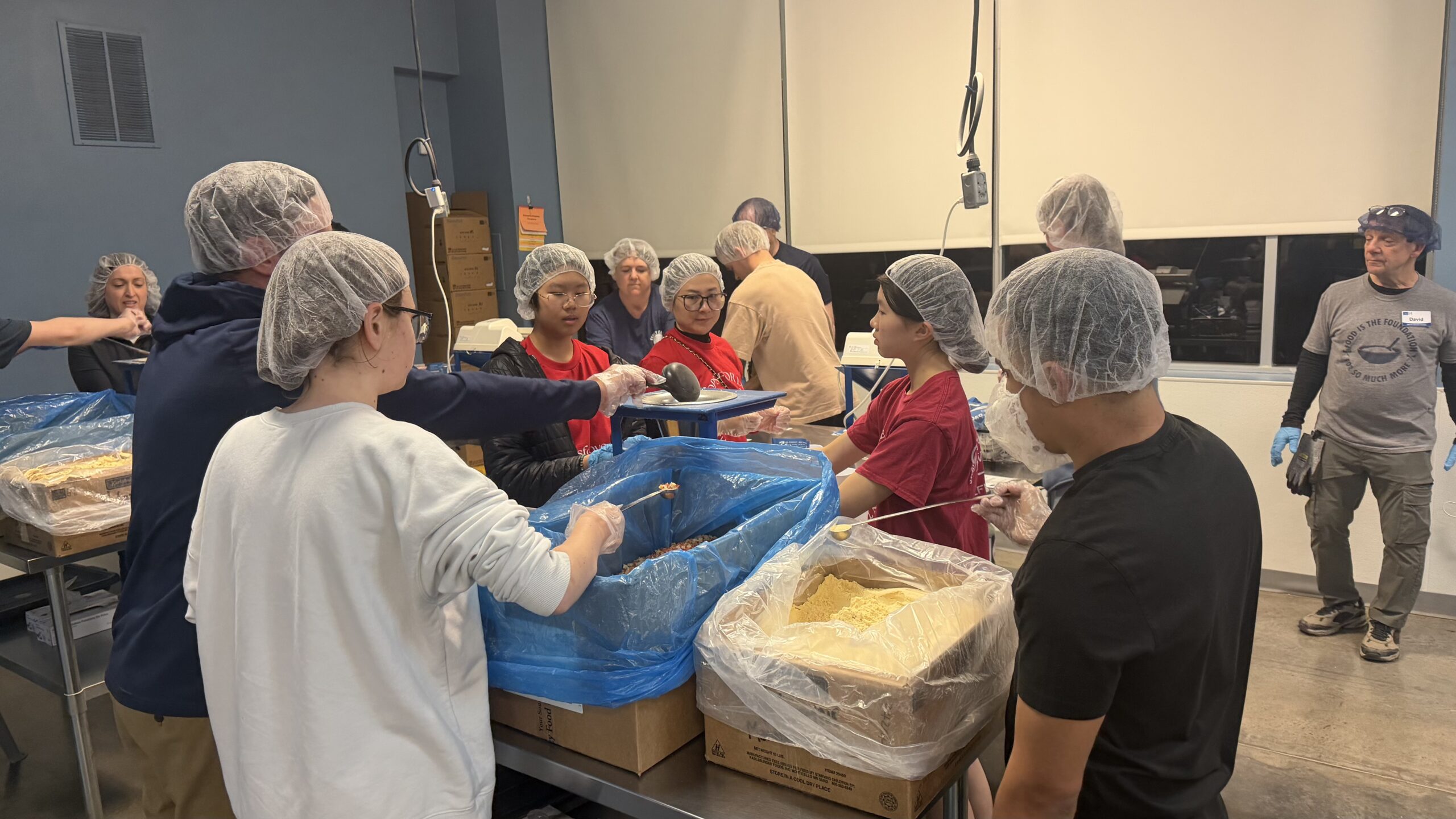 On February 7th, six AYLUS volunteers helped pack meals at Feed My Starving Children. After the orientation—which included a safety video and instruction video—volunteers across several organizations were divided up into groups according to our organization. Then, we’d move into the next room consisting of five tables where volunteers would package MannaPack—a scientifically formulated nutritional meal. There could be fifteen people to one table number, which itself was divided into two tables. Every volunteer would choose their own roles (except for sealing, which only adults could do). Two did scooping, two did bagging, two did weighing, two (adults) did sealing, and one person would pack the bags into a box (for both tables). Since we only had six people, we met and worked with other volunteers that were not part of AYLUS; however, we happily integrated them as part of our group. Through cooperation and communication, AYLUS volunteers were able to quickly power through the 2-hour session. In total (with other volunteers), we packed 124 boxes and 26,784 meals for kids in war-torn or economically underdeveloped countries, helping sustain Feed My Starving Children’s mission in year-long sustenance for these children. Thus, we make sure to lay down food as the foundation so that these kids can grow up without worrying about hunger. Good work, volunteers!