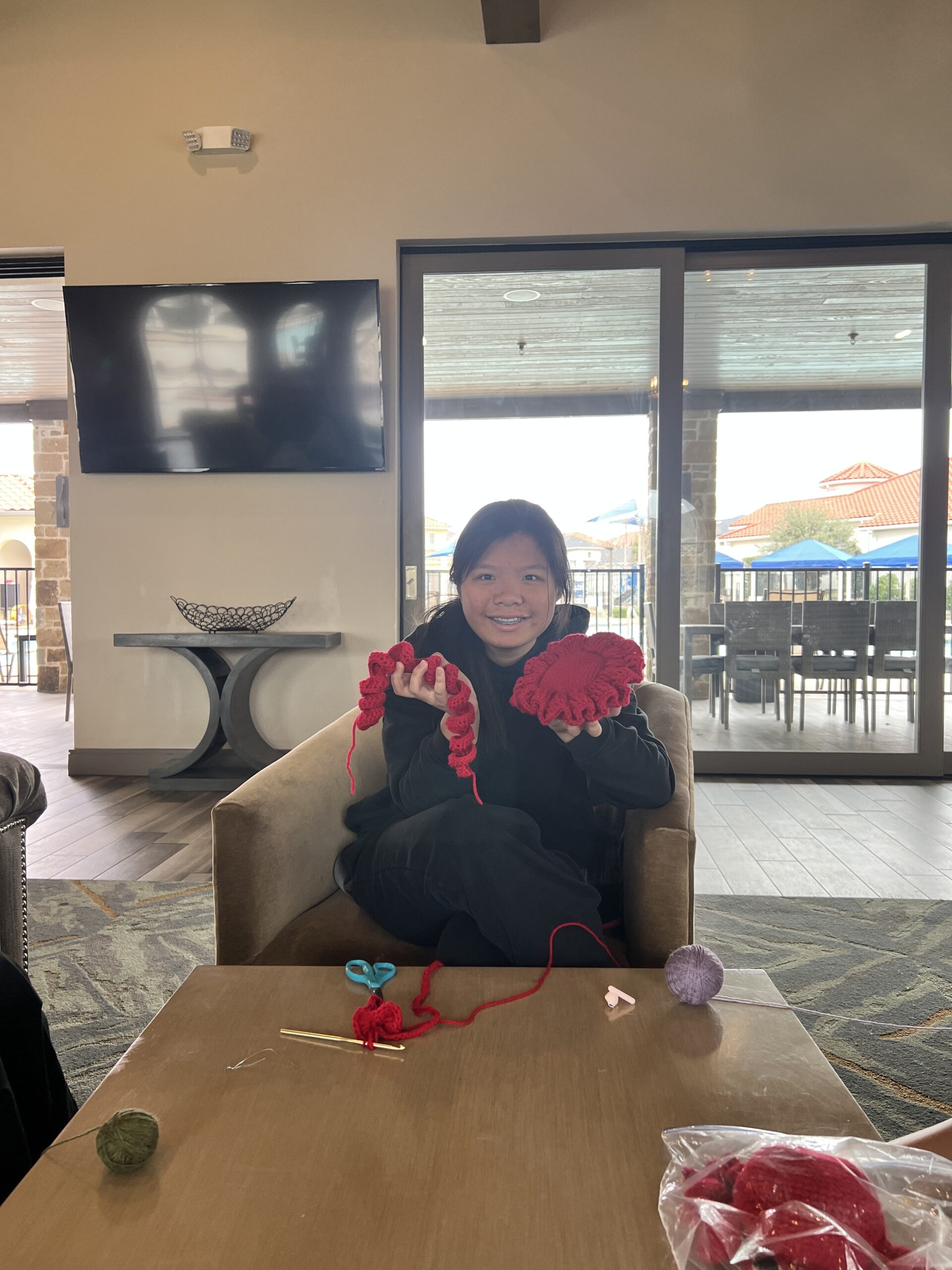 On March 1st, 2026, volunteers from the AYLUS Frisco & Plano branch joined together for another Loops for Love event at the Lexington Clubhouse. 2 new volunteers joined and were welcomed by members and assisted by one of the team’s lead. Volunteers all split off to work on their own crochet stuffed animal projects, many of which will later be donated to patients at the local children’s hospital. Thanks to all of the volunteers who took time out of their day to work on their projects!