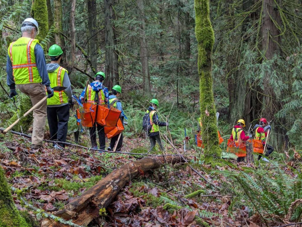 On March 7, 2026, members of the AYLUS Lake Washington Branch joined with the City of Sammamish to support a special restoration effort as part of the Evan’s Creek Preserve Expansion Project. Our members assisted in preparing a section of trail scheduled for decommissioning by stabilizing steep areas and planting vegetation to discourage the use of unsafe social trails created by off‑trail foot traffic.