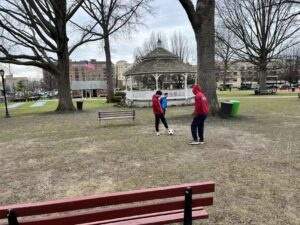 On Friday, March 13th, 4:30-5:30pm, great neck volunteers played various sport activities with kids to help them socialize and felt the support of the community. It’s a cold evening in Firefighter park, the Sun is just about to hide its head across the horizon, darkness was illuminated by various colorful street lights, and wind blew with velocity as they traveled between the volunteers and Jack, our friend and long-time client of our volunteering activity. We played soccer, tag and went on the springs, all cold but felt the warmth of each other and smiles that almost seemed contagious. There’s not a bit of negative feeling around the park. We have ourselves and no other as we socialize and talk to Jack about every delightful anecdote in our boring life. Inciteful and inspired by his stories, Cody and Owen felt the need to support him every week and help him feel loved and supported. Even though 1 hour can’t really have detrimental effects on Jack. We hope that, step by step, we can lay his footsteps for a fun, happier future, bringing more smiles than he already has in his face.