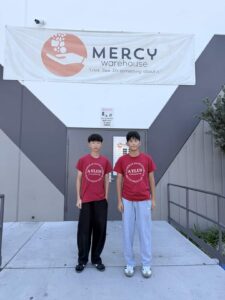 On Sunday, March 15th, from 10:00 am to 1:00 pm, members of the San Clemente Branch of AYLUS, Tylon Zhou and Shuqi Hu volunteered at Mercy Warehouse #14 to organize clothing. They signed in when they arrived and got to work right away.
