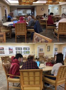 Today, at Fellowship Village, volunteers helped seniors with many different issues. A volunteer helped one customer set up her new kindle and connect to WiFi, and made sure she was able to read the books she wanted to and let her explore the device a bit. Another man wanted to check out ebooks from his library, so the volunteer showed him how to use Libby. Another senior needed to create an SSN account which the volunteer helped to set up, and then gave him instructions on how to use zoom meetings and play around with the app.