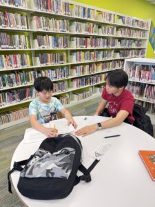Brian Zhang helped the students organize and complete their daily homework, ensuring it was done carefully and on time. Linzi Yeung and Baiyu Chen focused on reading tutoring, guiding the student to understand the text and explaining any parts they didn’t understand. Jason Zeng was responsible for solving math problems, breaking down difficult concepts to help the student understand the problem-solving process more clearly.