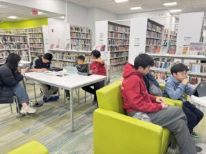 Siwoo Song and Junlin Yu helped two students review key concepts and practice strategies to prepare for the upcoming state exams.