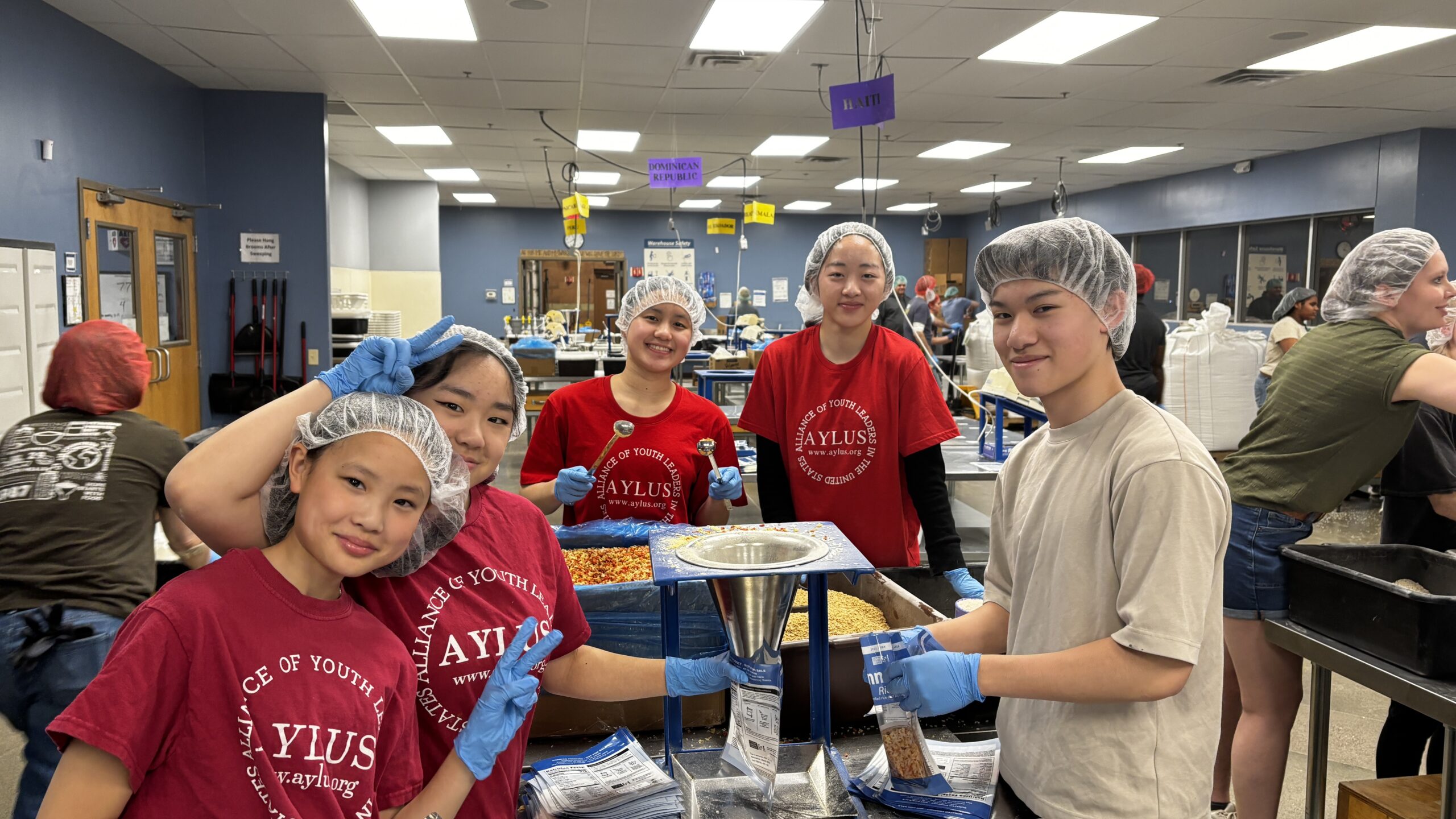 Lucy Chen, Jasper Fung, and Helen Liu participated in a food packing