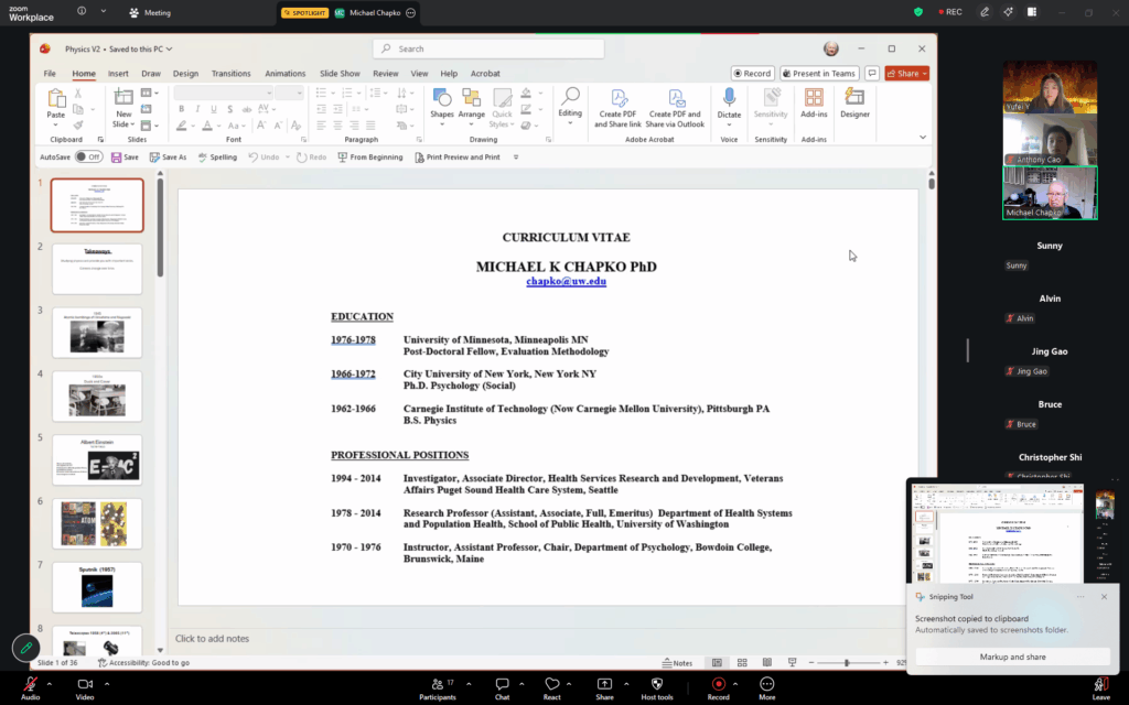 The AYLUS Lake Washington Branch Physics Division successfully hosted a Journey in Physics Seminar presented by UW Professor Michael Chapko on March 22, 2026. Our members Yufei Ye and Anthony Cao volunteered as co‑hosts for the event. The seminar lasted from 3:00 p.m. to 4:00 p.m.