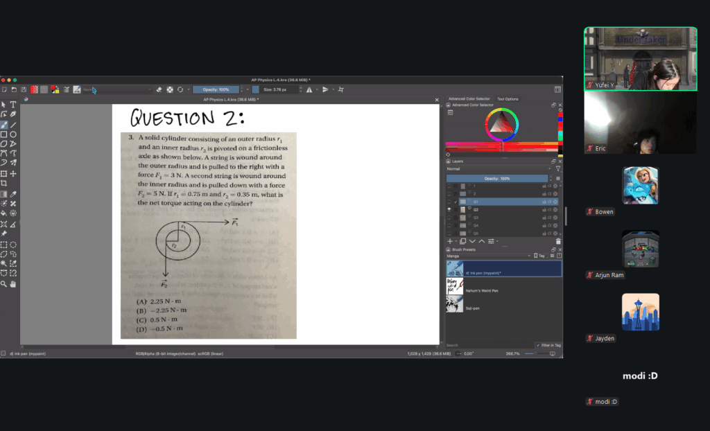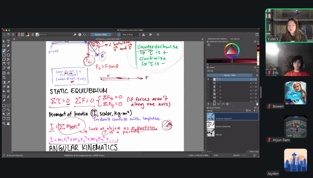 In lesson 4, students reviewed rotational energy, kinematics, momentum, and impulses. We went over the different formulas and processes associated with these subjects, such as inertia. Students practiced many relevant AP style questions about the topics reviewed in class and discussed the answers with the teacher and TA.