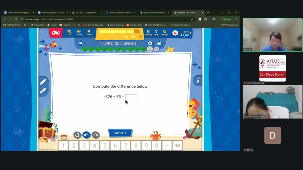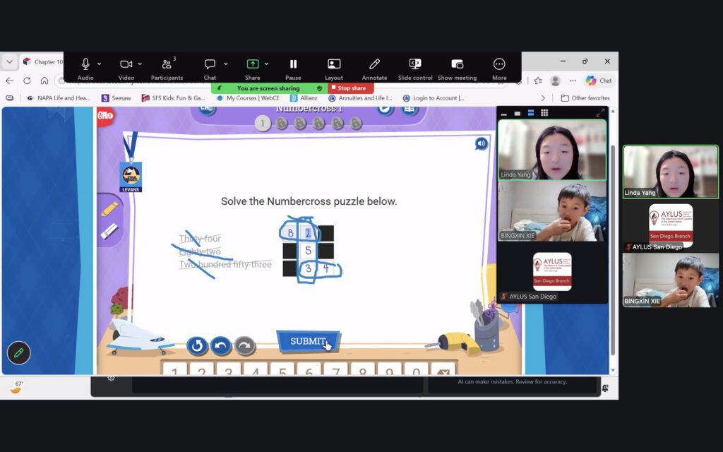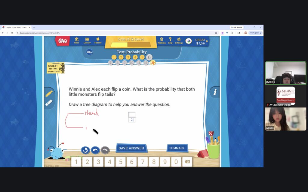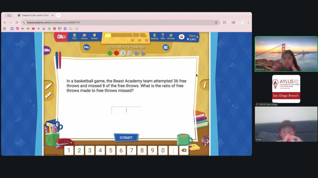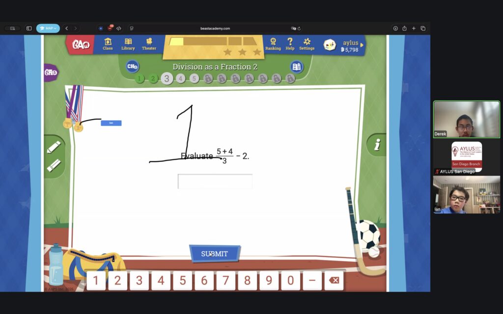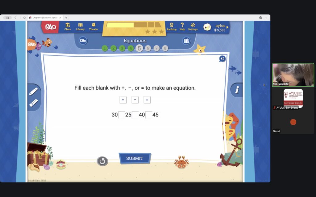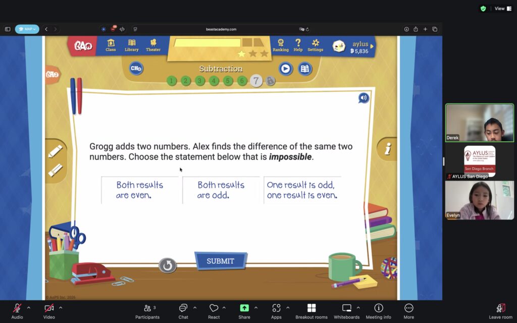 AYLUS San Diego Committee kicked off the Beast Academy online class in 2020 during the COVID-19 period. During 2025-2026, we continue cooperating with Libraries of Love to raise funds. The 80th Beast Academy online class in 2025-2026 was on March 16-March 22, 2025.