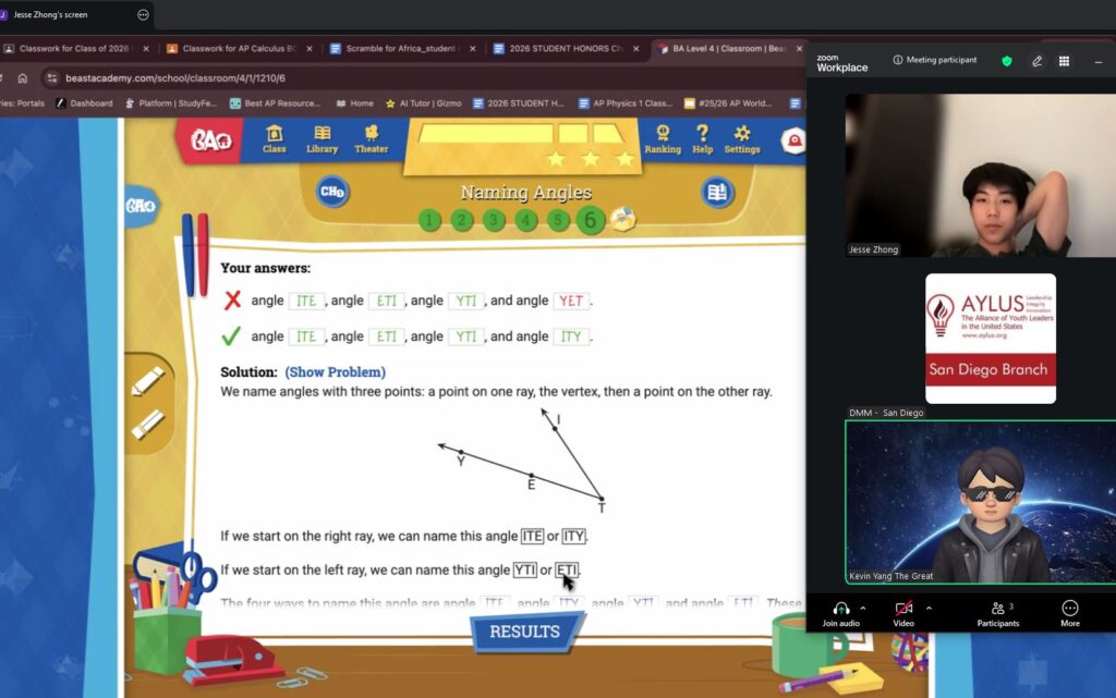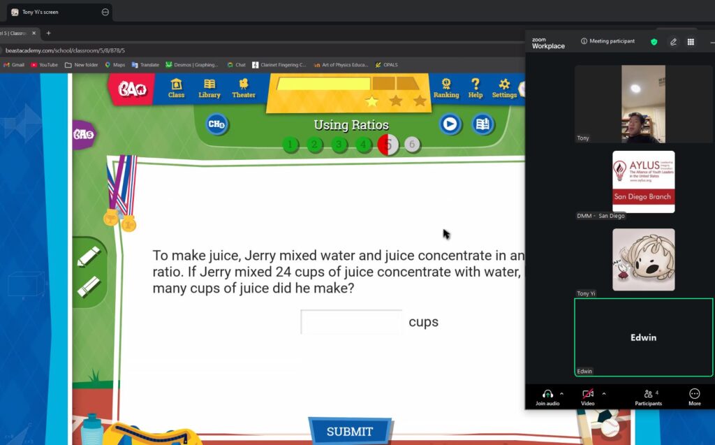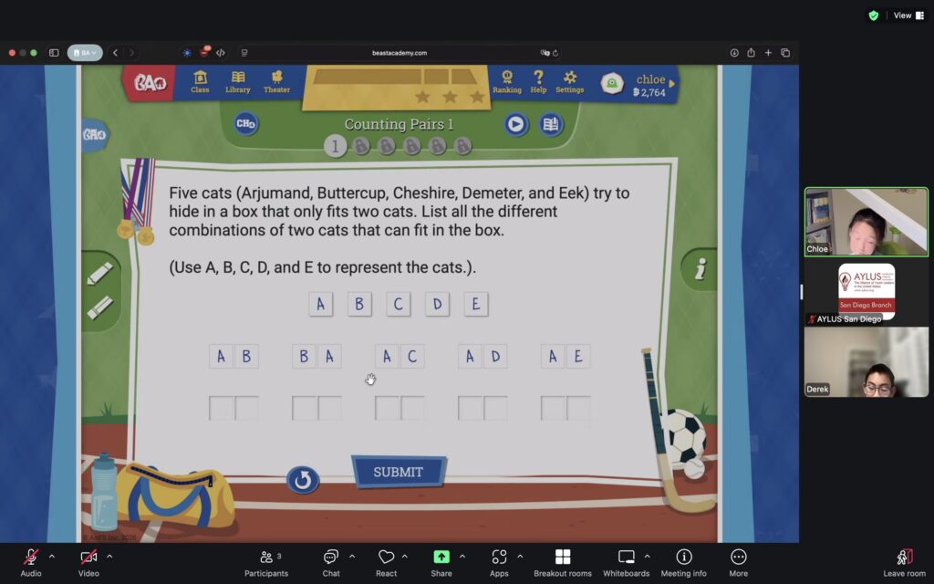 Beast Academy is a mathematics program for elementary and middle school students, and highly qualified high school volunteers will be teaching the Beast Academy curriculum. Currently at the San Diego Branch, enough students have signed up for this course for it to be offered in five levels: 1, 2, 3, 4 and 5. Through tutoring sessions hosted virtually over Zoom, our volunteers teach students numerous informative mathematical concepts that help to bolster problem-solving skills and improve their mathematical knowledge.